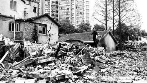 房主刘先生介绍,昨日凌晨3时,他正在睡觉,多个穿便装的持械青年破门而入,威胁他马上离开,否则后果自负。刘先生说,他只得穿好衣服出门,在路边看着挖掘机将他家和邻居家房子推倒,“家里的洗衣机、电冰箱、电视等都没搬出来。”